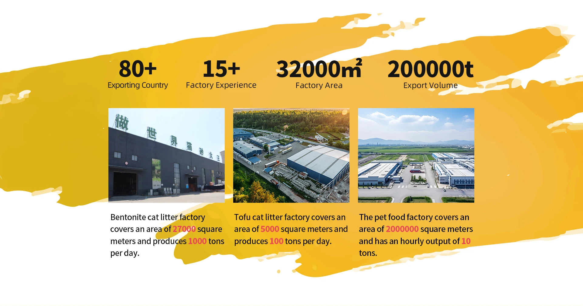 Ana ürünler:Kedi kumu, köpek maması, kedi maması, evcil hayvan ürünleri, evcil hayvan yemeği
